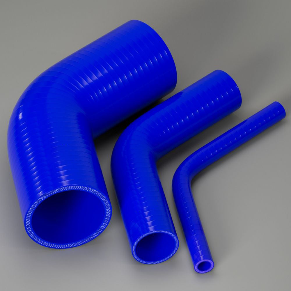 We increase the number of plys and wall thickness of our 60 degree hoses as the diameter increases, this is because we want all our range capable of carrying fluid and air at very high pressures. So if you’re building a racing vehicle, adding turbochargers or superchargers, our silicone hose is the way to go.